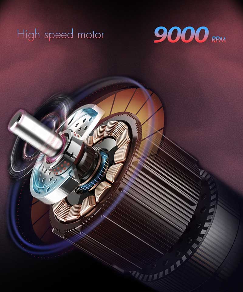 • 🏎️ High-speed motor (9,000 RPM) for effortless power